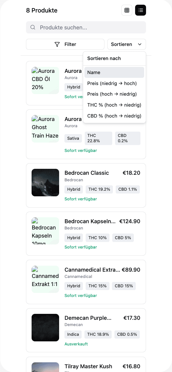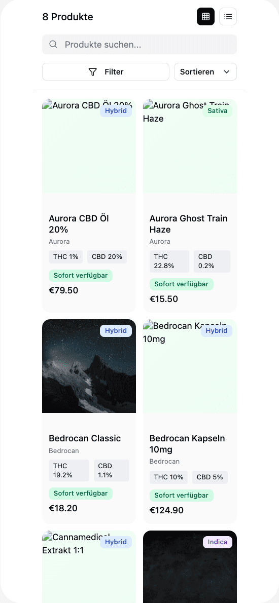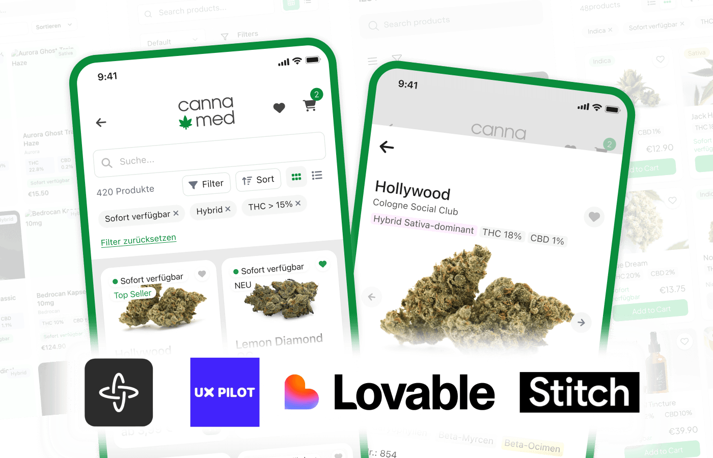 I was tasked with designing a mobile UI prototype for a medical cannabis internet shop: a catalogue with grid and list views and a product page. Rather than starting from scratch, I used it as an opportunity to test how different AI prototyping tools handle typical e-commerce interfaces.